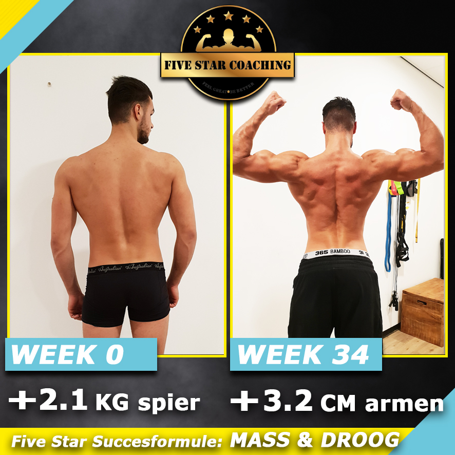 Na het eerste doel van 10 kg bereikt te hebben en het enthousiasme van Five Star Coaching besloot ik er nog 10 kg aan vast te plakken.. in die periode ook van fatloss programma overgestapt op het massa programma (wat erg goed bevalt!).