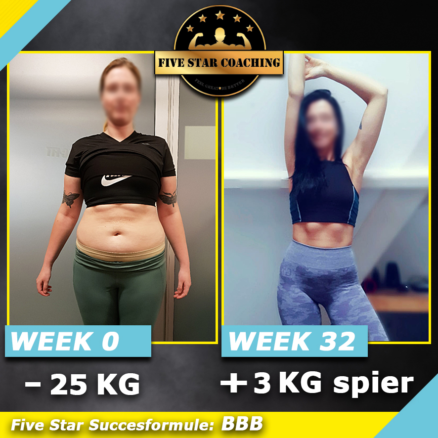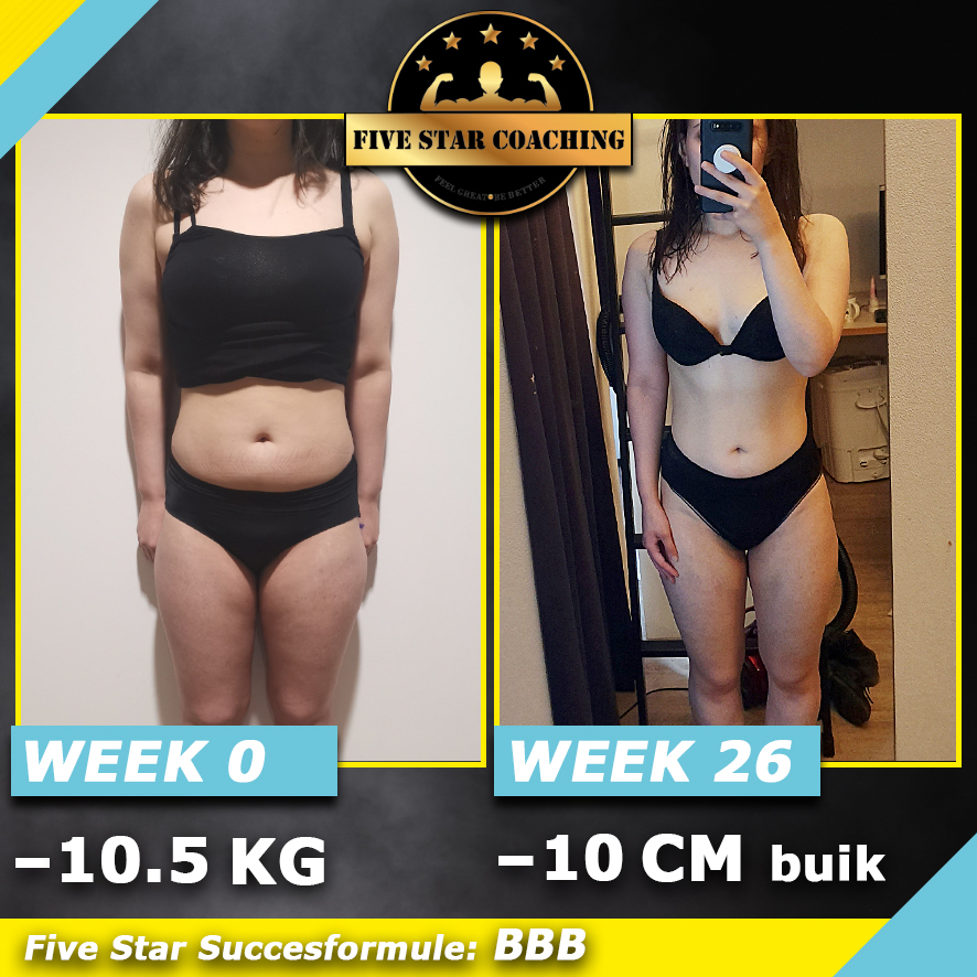 “zelf heb ik lang gedacht dat ik gewoon zo was en het maar moest accepteren, tot de eerste Corona golf waarbij ik het anders wou aanpakken.. Door aan te melden bij FiveStarCoaching ben ik begonnen met super veel te leren over voeding en iedere week een Personal training ging ik sporten voortaan leuk vinden.