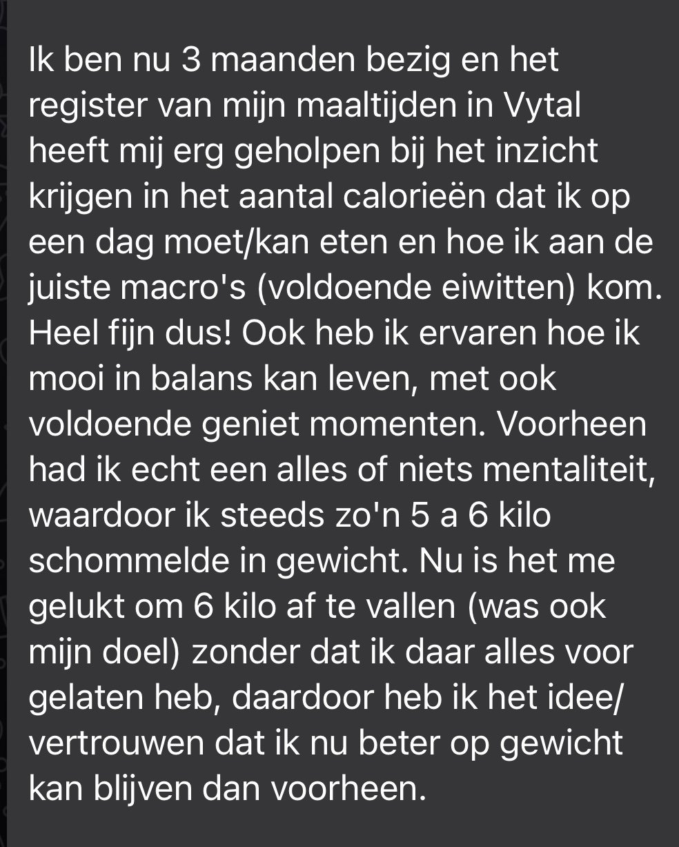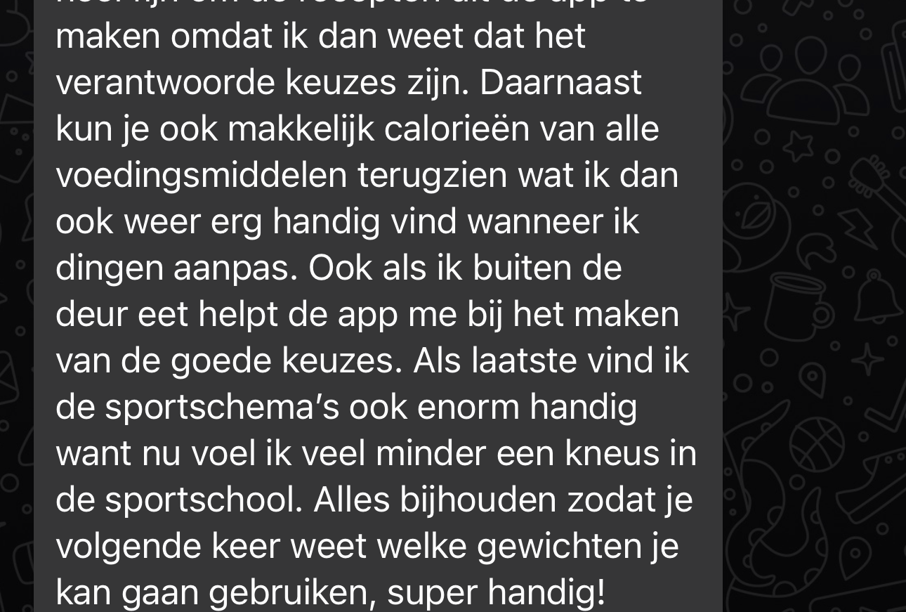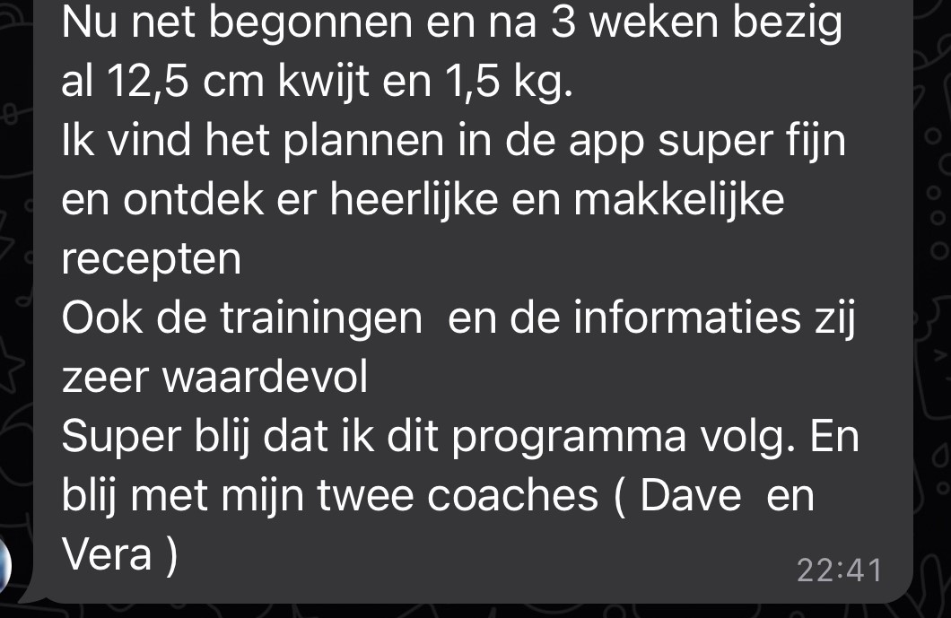 - ✅ Je staat 24/7 in contact met een coach voor als je even wat extra hulp nodig hebt of wilt weten wat je toch het beste kunt eten op die BBQ van zaterdag.