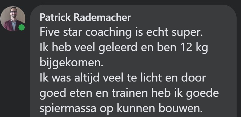 Na het eerste doel van 10 kg bereikt te hebben en het enthousiasme van Five Star Coaching besloot ik er nog 10 kg aan vast te plakken.. in die periode ook van fatloss programma overgestapt op het massa programma (wat erg goed bevalt!).