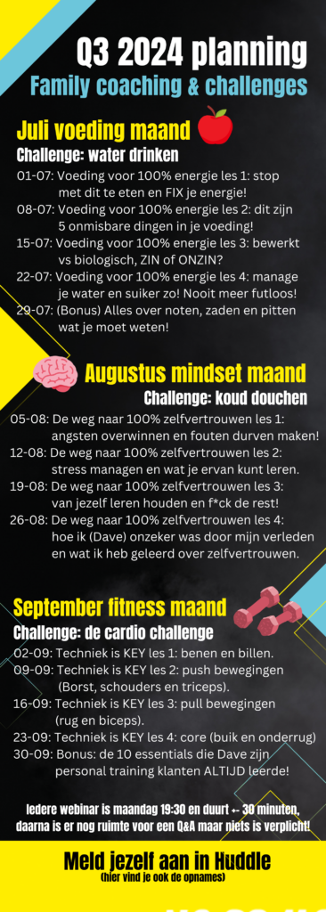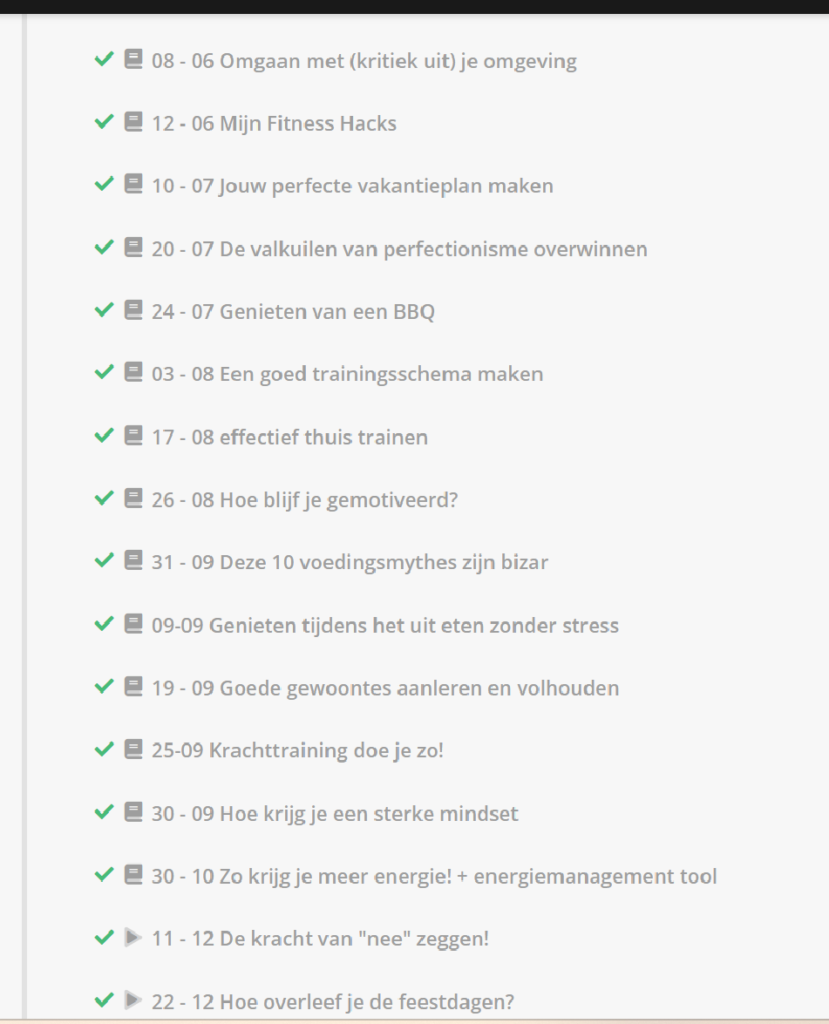 - β Je red het niet om in 12 weken je doelen te behalen (je moet bijvoorbeeld meer dan 6 kilo afvallen, veel leren over je gedragspatronen en/of nog veel leren over fitness en mindset).