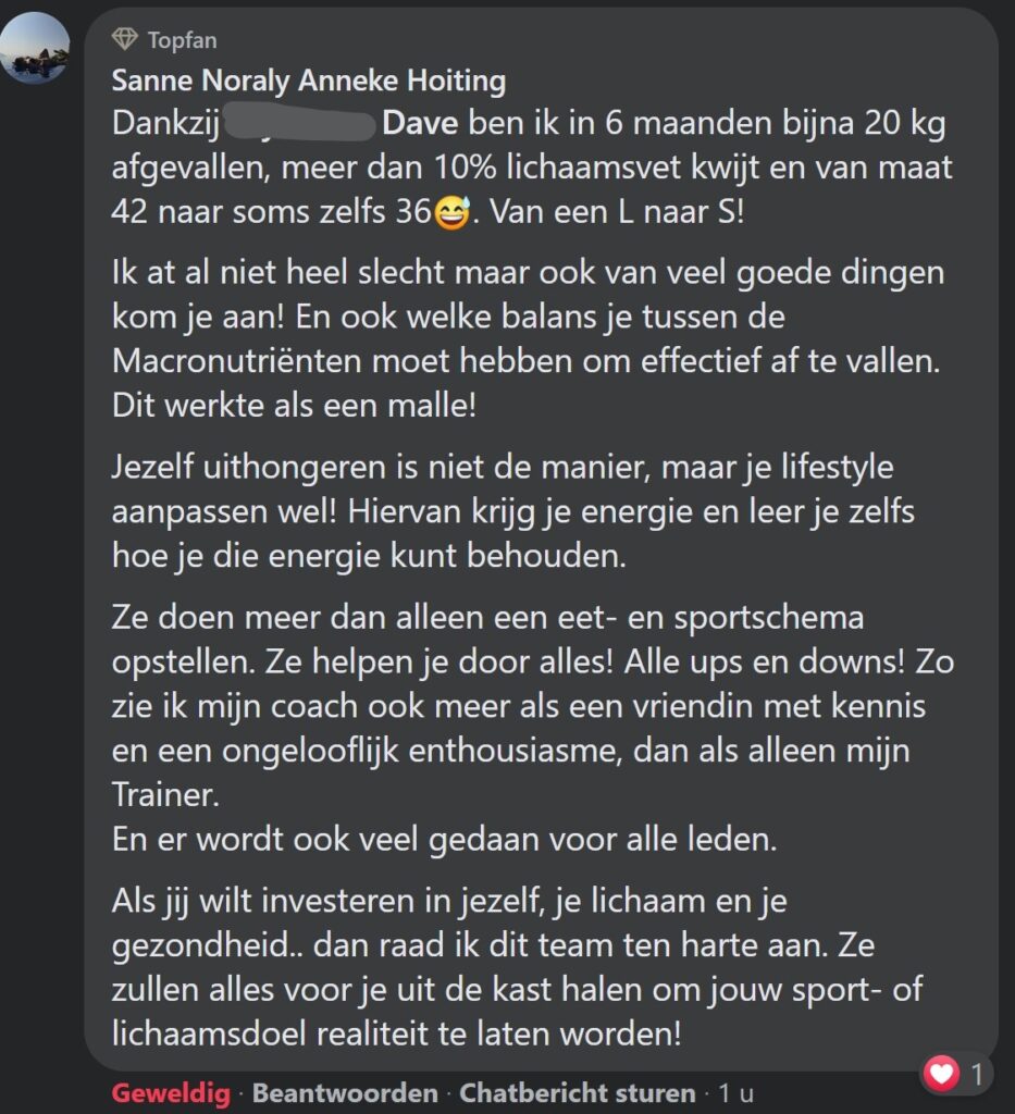 - β Je red het niet om in 12 weken je doelen te behalen (je moet bijvoorbeeld meer dan 6 kilo afvallen, veel leren over je gedragspatronen en/of nog veel leren over fitness en mindset).